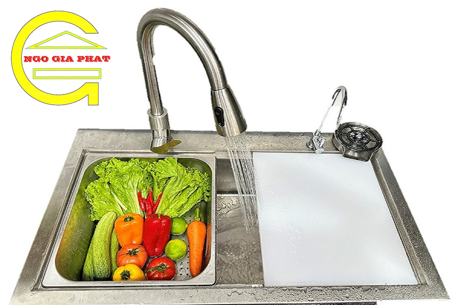 + Chất liệu bồn rửa chén inox cao cấp, bền chắc.