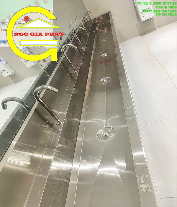 Máng rửa tay inox công nghiệp là thiết bị vệ sinh quy mô lớn, được thiết kế tối ưu với hệ thống đa vòi nước, cho phép nhiều người sử dụng cùng lúc. Đây là giải pháp hoàn hảo giúp tiết kiệm thời gian và đảm bảo tiêu chuẩn vệ sinh khắt khe tại các nhà xưởng, trường học, bệnh viện và khu bếp ăn tập thể.