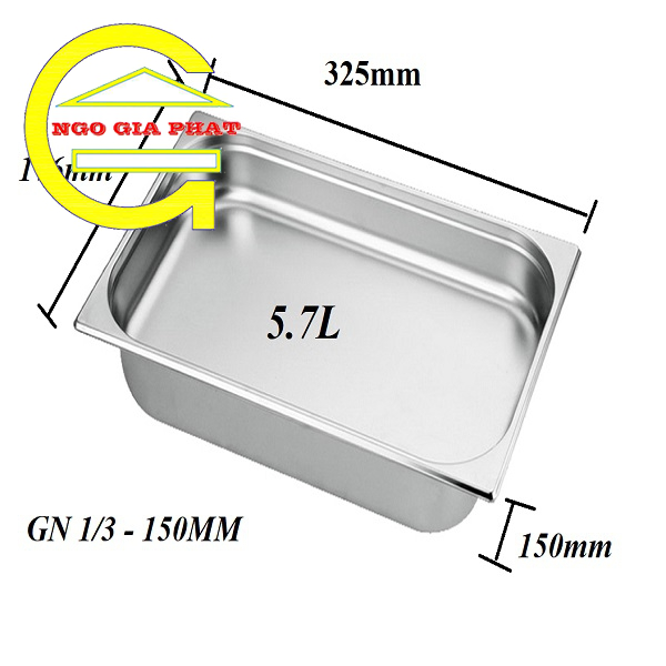 khay gn 1/3, khay gn 1/3 inox 304, khay gn 1/3 sâu 150mm, khay gn 1/3 sâu 150mm inox 304