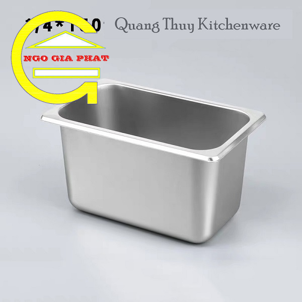 Sản pẩm khay GN 1/4 được làm từ Inox Cao Cấp Không Gỉ, đảm bảo vệ sinh an toàn thực phẩm. Sản phẩm được sử dụng kèm cùng nắp khay giúp đậy kín đáo, được dùng để đựng thực phẩm như thức ăn, trái cây, kem,….