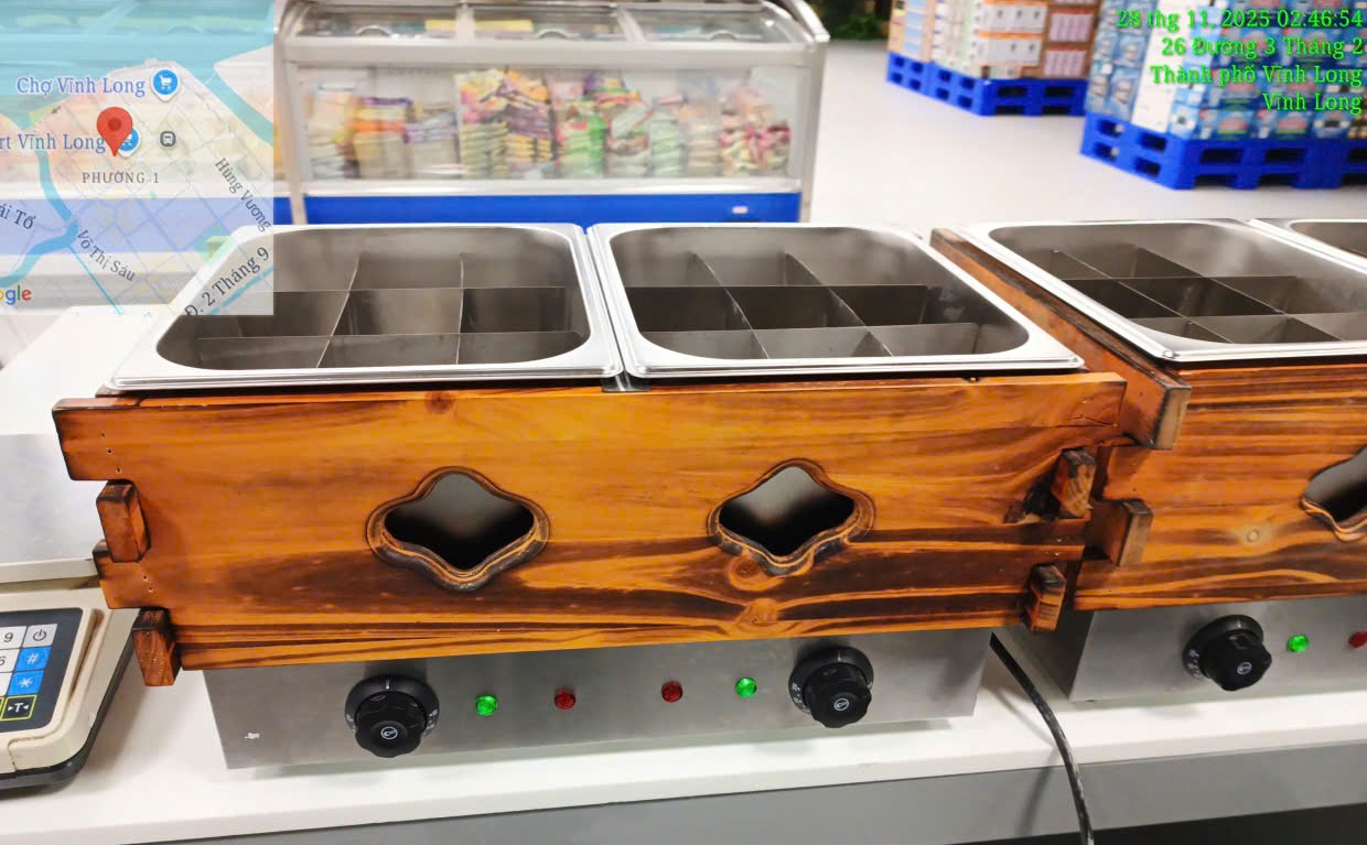 - Sử dụng điện 220V, dễ vận hành cho quán nhỏ, xe đẩy và cửa hàng tiện lợi.